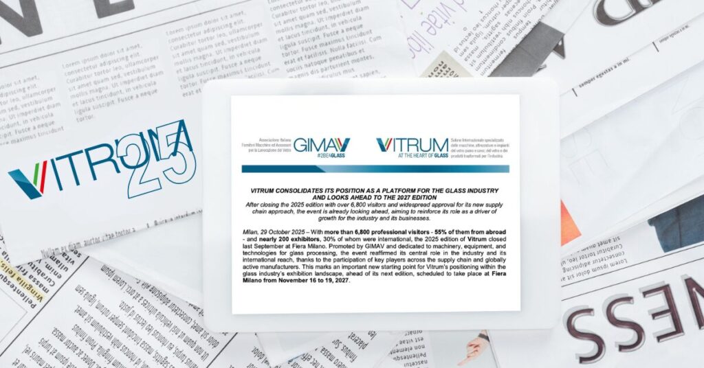 - VITRUM RAFFORZA IL SUO RUOLO DI PIATTAFORMA PER L’INDUSTRIA DEL VETRO E LAVORA ALL’APPUNTAMENTO DEL 2027by VITRUM on Novembre 2, 2025 at 10:52 pm